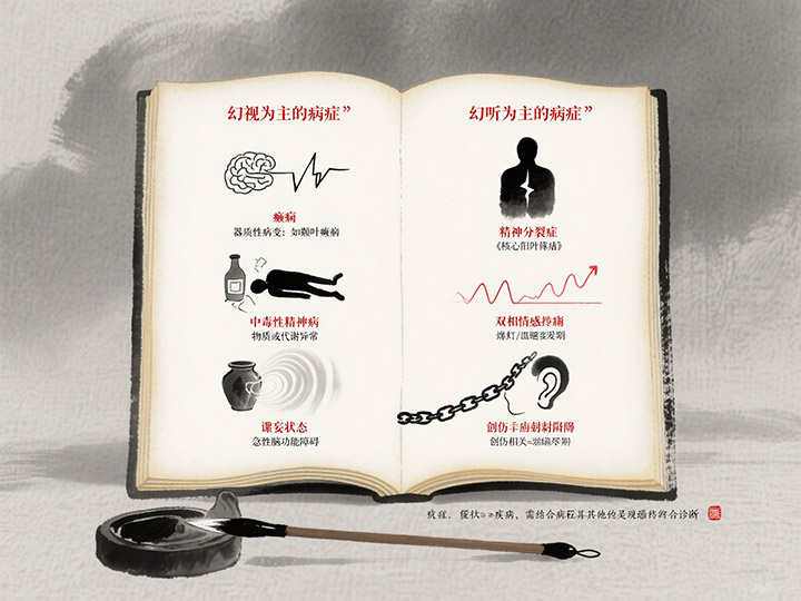 幻视(Visual Hallucination)和幻听(Auditory Hallucination)是精神疾病中常见的症状,但它们并非“精神病”的唯一标志。这些症状可能由多种精神障碍、神经系统疾病或感官异常引起。