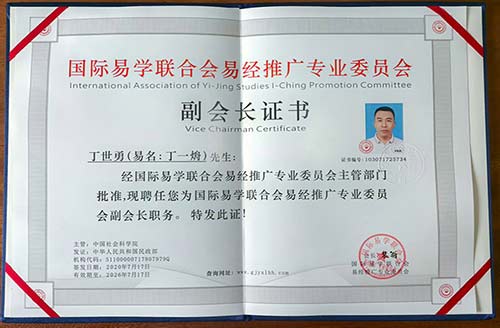 国际医学联合会易经推广专业委员会副会长证书