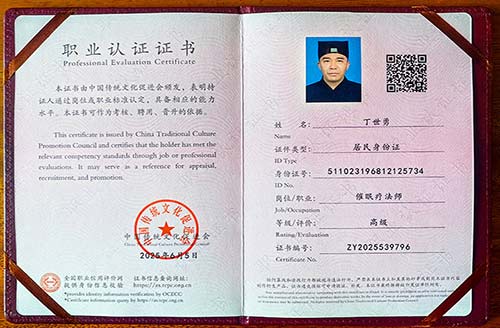 催眠疗法师认证证书